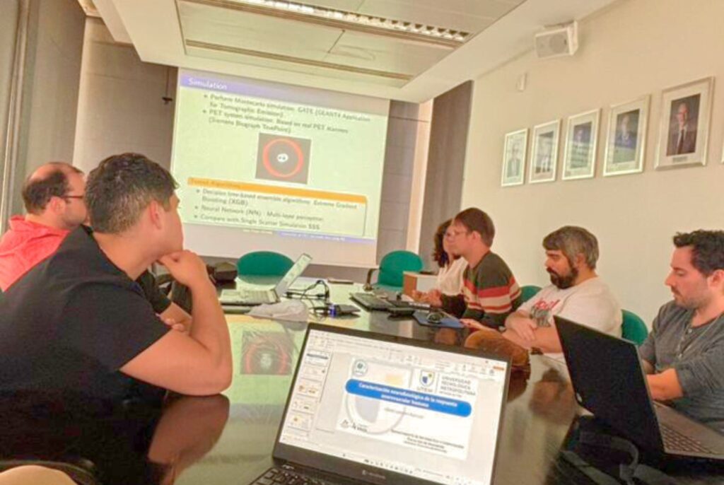Posteriormente, en Valencia, la delegación sostuvo una reunión académica en la Universidad Politécnica de Valencia con el grupo de investigación en reconstrucción de imagen médica, liderado por la Dra. María José Rodríguez. En el encuentro se presentaron proyectos desarrollados por el LATSIB, se intercambiaron metodologías de trabajo y se analizaron posibles líneas de colaboración futura, incluyendo opciones de movilidad estudiantil y la eventual incorporación del doctorando Alejandro Sanz.